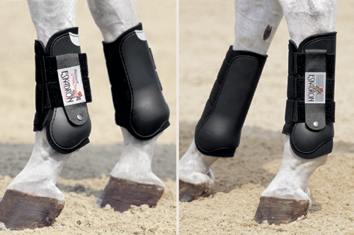 Eskadron's Flexisoft ® Cross Country tendon boots have easy-to-use double-Velcro fastenings, with a press-stud for extra security. Matching long hind boots are also available.